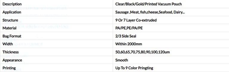 3 mil ,4mil,5mil Clear, Black,Gold, Printing Vacuum Pouch Bag For Meat Packaging